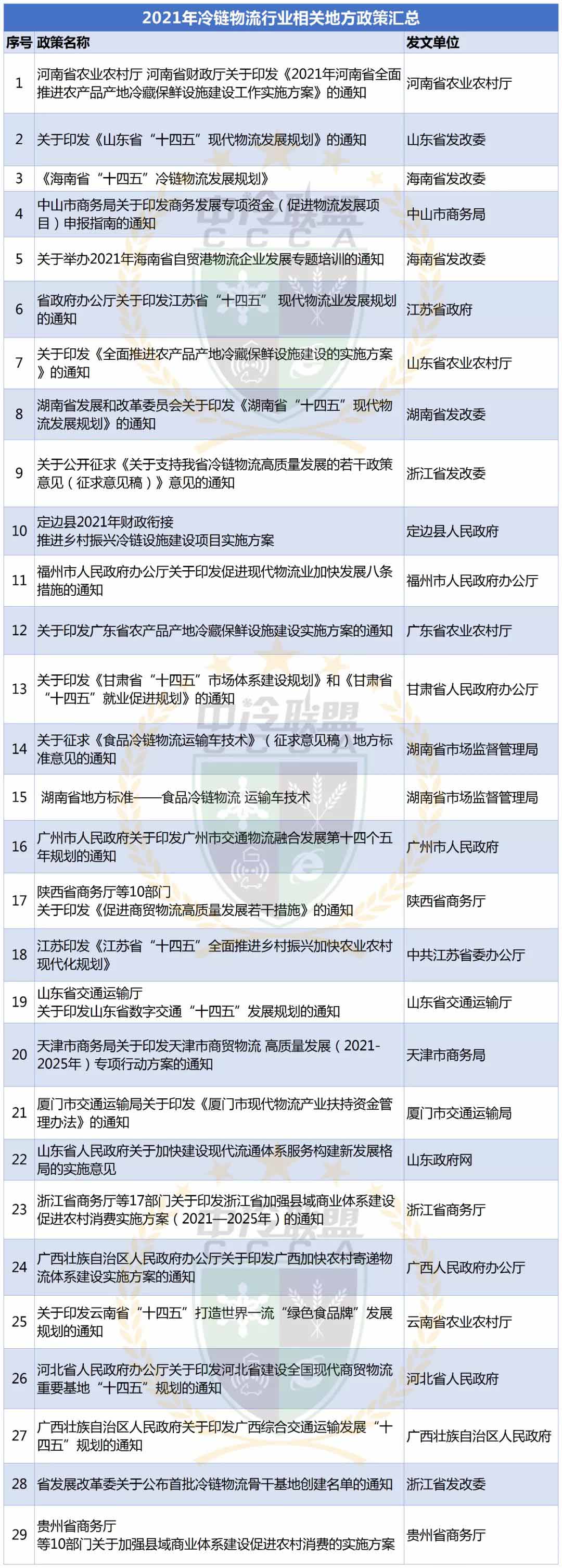 去年12月,國務(wù)院發(fā)布了“十四五”冷鏈物流行業(yè)發(fā)展頂層設(shè)計——《“十四五”冷鏈物流發(fā)展規(guī)劃》,預示著在新發(fā)展格局下,國家將以更大力度推動冷鏈物流發(fā)展。那么,在這一年中,國家及地方還出臺了哪些政策支持冷鏈發(fā)展呢?