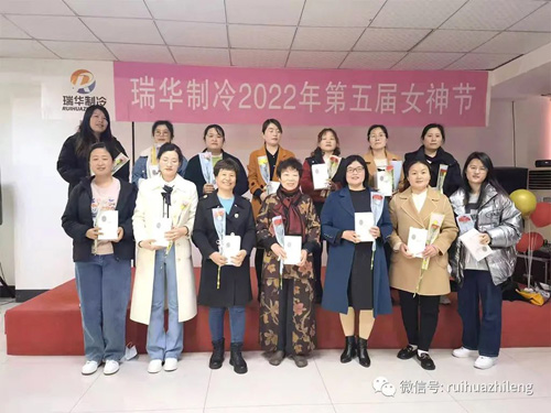 2022年3月8日,女神節(jié),瑞華制冷迎來第五屆女神節(jié)。所有男士們聚在一起,為公司所有女神送上鮮花及禮物。同時也迎來第五屆瑞華制冷巾幗紅旗手與巾幗時代先鋒評選,有三位女神獲獎,并為她們舉行頒獎儀式。