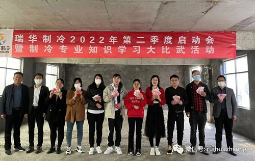2022年4月16日,春暖花開百花齊放,山東瑞華制冷設備有限公司,在倉儲中心新落成的二期倉儲內(nèi),召開2022年度二季度啟動會暨制冷知識大比武。會議表彰了上季度工作突出的家人,對部分人員進行晉升,頒發(fā)了本月度的年功獎獎金及為過生日的家人送上生日祝福與禮物,也為二季度開了一個好頭。