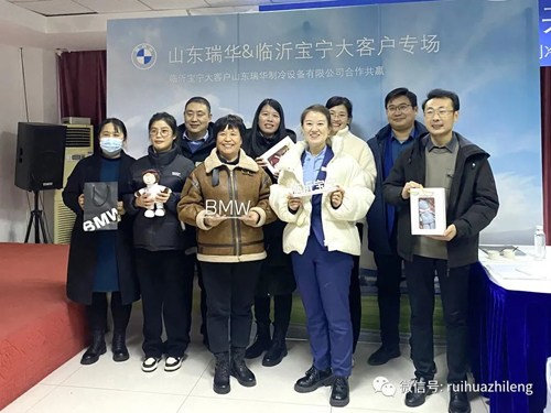 為激勵(lì)公司員工工作積極性,同時(shí)也為了感謝瑞華人的努力付出,瑞華制冷公司決定為員工實(shí)現(xiàn)寶馬夢(mèng),2022年12月1日下午邀請(qǐng)臨沂寶寧寶馬大客戶部經(jīng)理白秀珍,銷(xiāo)售經(jīng)理高山及其團(tuán)隊(duì)人員為我們講解關(guān)于寶馬車(chē)系介紹;詳細(xì)了解車(chē)型、配置及價(jià)格;會(huì)后我們又去試駕感受寶馬的車(chē)感。